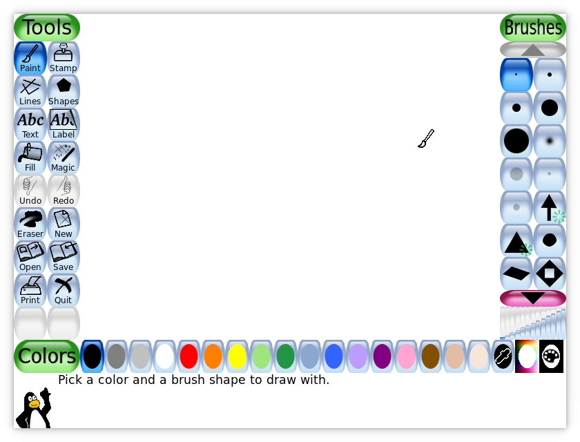 Tux Paint is a free, award-winning drawing program originally created for children ages 3 to 12, but enjoyed by all! It combines an easy-to-use interface, fun sound effects, and an encouraging cartoon mascot who guides children as they use the program.